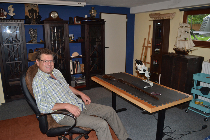 lovell@oldguns.de I am a research scientist with a PhD in neurophysiology, based in the Falkensee area of Brandenburg, just outside of Berlin. I use much of my scientific training when identifying and describing some of the historical antique weaponry and especially long-arms I find in my searches around mainland Europe. I also have much practical experience in anatomy; which can be directly translated to restoration work which is often performed by me at the microscopic level. If you are interested in any of the guns on this website or wish to discuss a restoration project, please feel free to contact me on the above email.