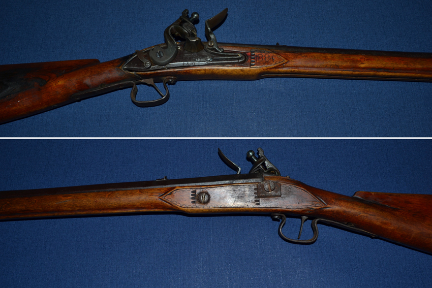 Some parts such as the trigger and trigger guard, the frizzen etc, appear to have been replaced a number of years previously and the flintlock configuration has been restored; in some instances these are old repairs made using simple/practical materials.