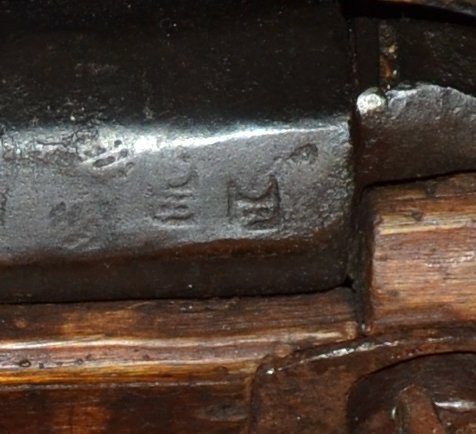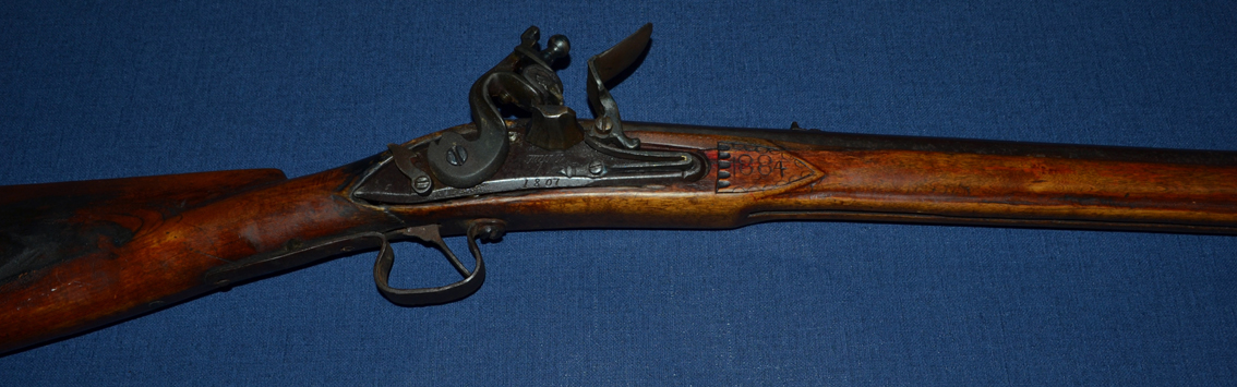 Although the lock and barrel were made in 1807, the numbers 1884 are carved into the right side forward of the lock. The exact meaning of this (if it is a date) is unclear. A small repair in the wood can be seen above the numbers.